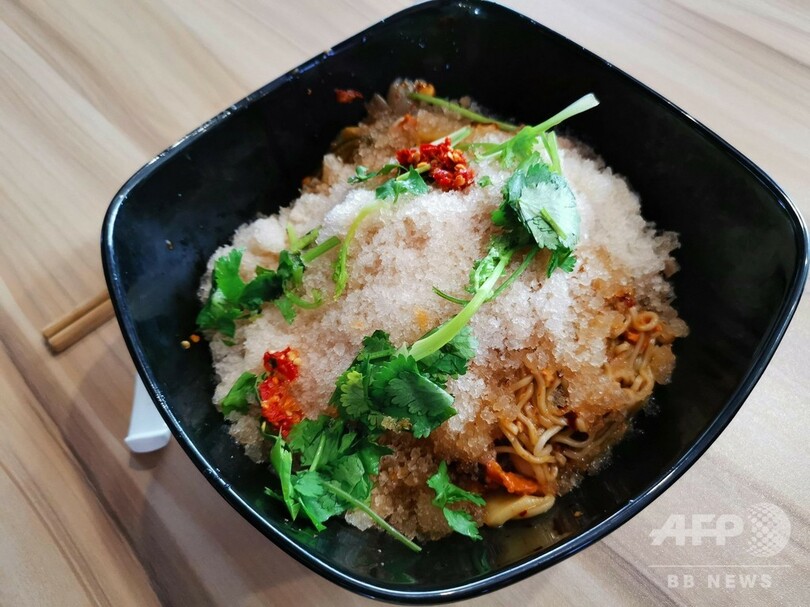 【5月2日 CNS】中国・重慶市(Chongqing)のある大学の食堂に、肉や野菜、春雨など好きな具材をスパイシーなスープで煮た料理「麻辣燙(マーラータン)」の冷たい版「冷やし麻辣燙(マーラータン)」が発売された。目新しさに、多くの学生たちを引き付けていた。(c)CNS/JCM/AFPBB News