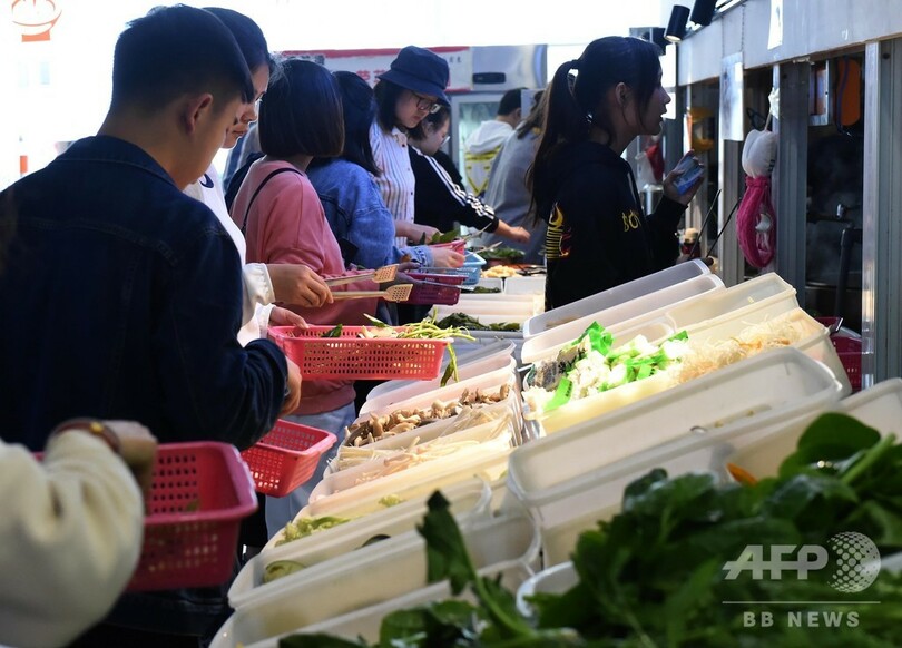 【5月2日 CNS】中国・重慶市(Chongqing)のある大学の食堂に、肉や野菜、春雨など好きな具材をスパイシーなスープで煮た料理「麻辣燙(マーラータン)」の冷たい版「冷やし麻辣燙(マーラータン)」が発売された。目新しさに、多くの学生たちを引き付けていた。(c)CNS/JCM/AFPBB News