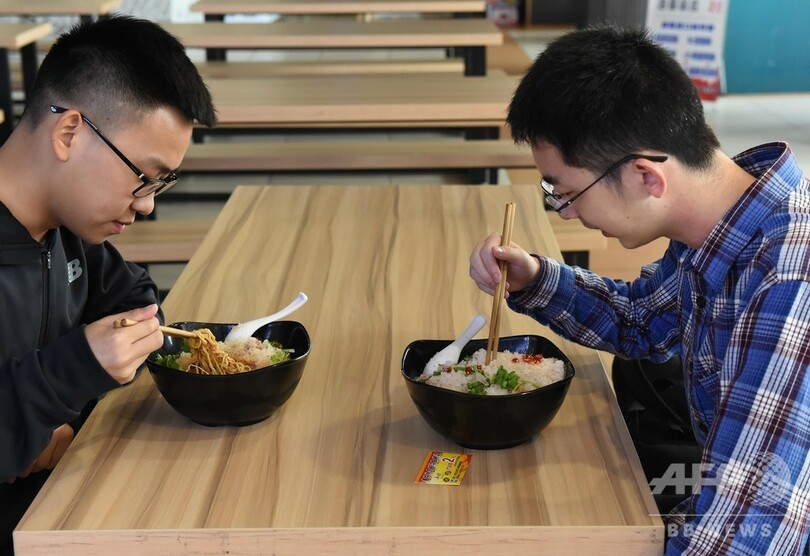 【5月2日 CNS】中国・重慶市(Chongqing)のある大学の食堂に、肉や野菜、春雨など好きな具材をスパイシーなスープで煮た料理「麻辣燙(マーラータン)」の冷たい版「冷やし麻辣燙(マーラータン)」が発売された。目新しさに、多くの学生たちを引き付けていた。(c)CNS/JCM/AFPBB News