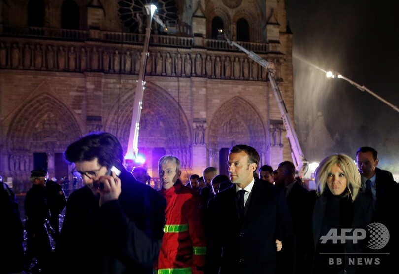 マクロン大統領は、パリのアンヌ・イダルゴ(Anne Hidalgo)市長、ミシェル・オペティ(Michel Aupetit)大司教と並び、涙を浮かべながら、消防士らの働きによって「最悪の事態は免れている」と説明。さらに「最高の才能の持ち主たち」を招いて損壊した部分を再建すると表明した。