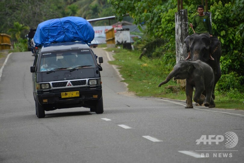 【4月18日 AFP】インドネシア・アチェ(Aceh)州南部のルスル自然地域(Leuser Ecosystem)で15日、スマトラゾウに水浴びをさせるゾウ使いの姿が見られた。(c)AFP
