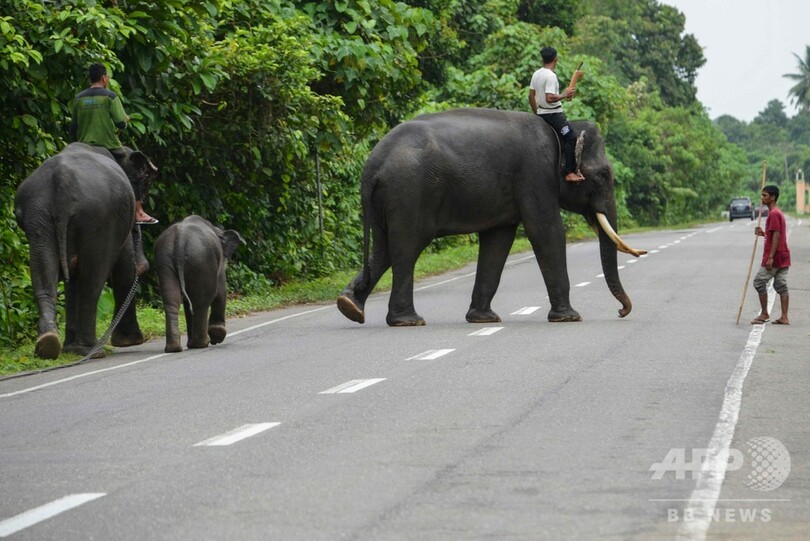 【4月18日 AFP】インドネシア・アチェ(Aceh)州南部のルスル自然地域(Leuser Ecosystem)で15日、スマトラゾウに水浴びをさせるゾウ使いの姿が見られた。(c)AFP