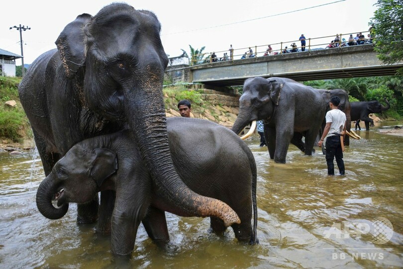 【4月18日 AFP】インドネシア・アチェ(Aceh)州南部のルスル自然地域(Leuser Ecosystem)で15日、スマトラゾウに水浴びをさせるゾウ使いの姿が見られた。(c)AFP