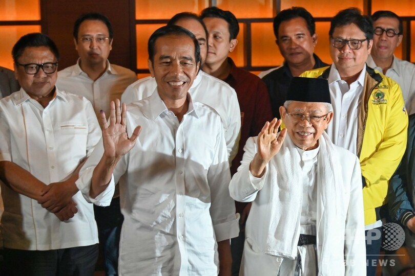ジョコ大統領は首都ジャカルタで歓声を上げる支持者らを前に「われわれは皆、出口調査と即時集計の数字を目にしたが、それでも公式結果を待つ必要がある」と語った。