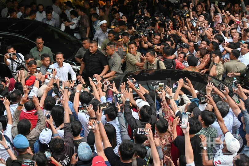 ジョコ大統領は首都ジャカルタで歓声を上げる支持者らを前に「われわれは皆、出口調査と即時集計の数字を目にしたが、それでも公式結果を待つ必要がある」と語った。