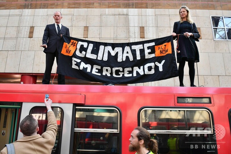 一連のデモは学者らが昨年設立した運動団体「絶滅への反逆(Extinction Rebellion)」が主導している。絶滅への反逆は環境保護運動において最も急成長している団体の一つとなっている。(c)AFP