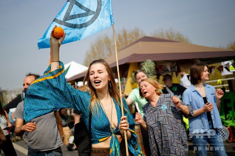 【4月19日 AFP】英首都ロンドンでは、気候変動の危険性を訴える活動家らによる大規模なデモにより市内の一部で交通がまひするなどしており、デモが始まった15日以降、400人以上が逮捕された。