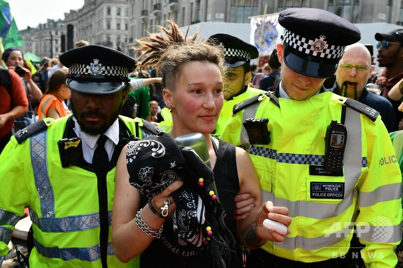 【4月19日 AFP】英首都ロンドンでは、気候変動の危険性を訴える活動家らによる大規模なデモにより市内の一部で交通がまひするなどしており、デモが始まった15日以降、400人以上が逮捕された。