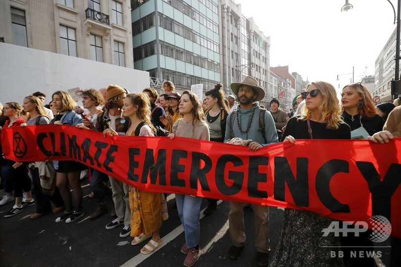 【4月19日 AFP】英首都ロンドンでは、気候変動の危険性を訴える活動家らによる大規模なデモにより市内の一部で交通がまひするなどしており、デモが始まった15日以降、400人以上が逮捕された。