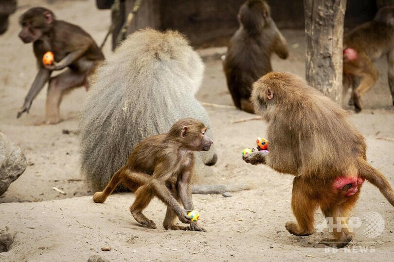 【4月22日 AFP】欧州は週末、キリスト教のイースター(Easter、復活祭)を迎え、祝祭ムードに包まれた。オランダ・アメルスフォールト(Amersfoort)にあるアメルスフォールト動物園(Dierenpark Amersfoort)では、イースターに合わせて動物たちにも色とりどりのイースターエッグがプレゼントされた。(c)AFP