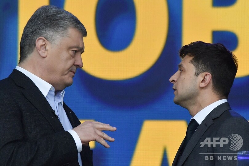 世論調査では、政治経験のないゼレンスキー氏が現職のペトロ・ポロシェンコ(Petro Poroshenko)大統領(53)を大きくリードしている。