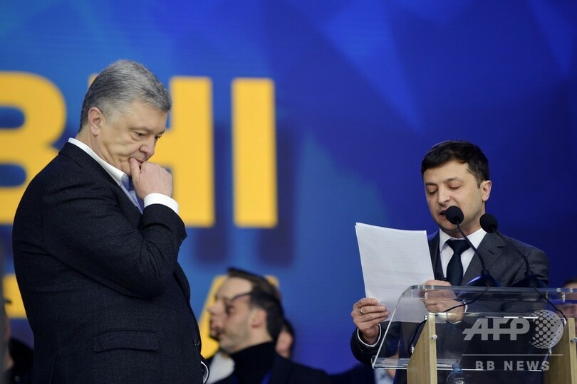 世論調査では、政治経験のないゼレンスキー氏が現職のペトロ・ポロシェンコ(Petro Poroshenko)大統領(53)を大きくリードしている。