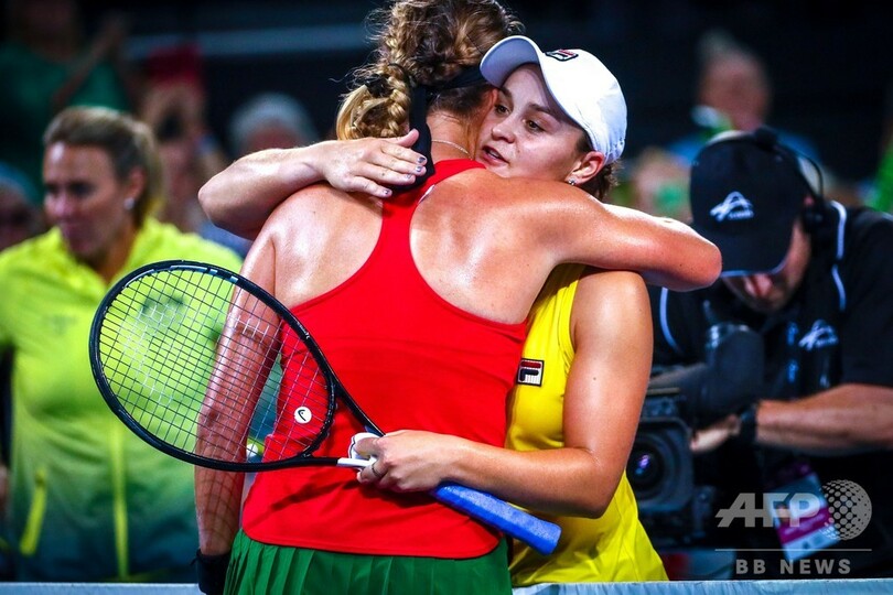それでも、第2試合では先月のマイアミ・オープン(Miami Open 2019)を制してトップ10入りを果たしたアシュリー・バーティ(Ashleigh Barty)が、ツアーのダブルスパートナーであるビクトリア・アザレンカ(Victoria Azarenka)を7-6(7-2)、6-3で難なく退け、26年ぶりの決勝進出を目指すオーストラリアが試合を振り出しに戻している。(c)AFP