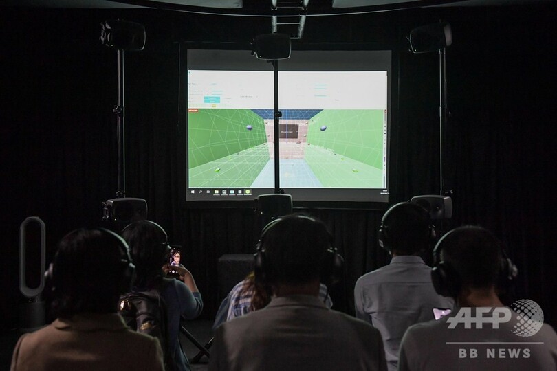 今回の展示会では、エレクトロニクスや映像、映画・テレビ、音楽、ゲーム、漫画・アニメ、教育などの分野を含む技術応用の発展の現状を展示。最先端AI技術を搭載した犬型ロボットの「アイボ(aibo)」や、全方位から臨場感のある音を体験できる音響技術「360度リアリティオーディオ(360 Reality Audio)」が中国で初めて展示された。(c)CNS/JCM/AFPBB News