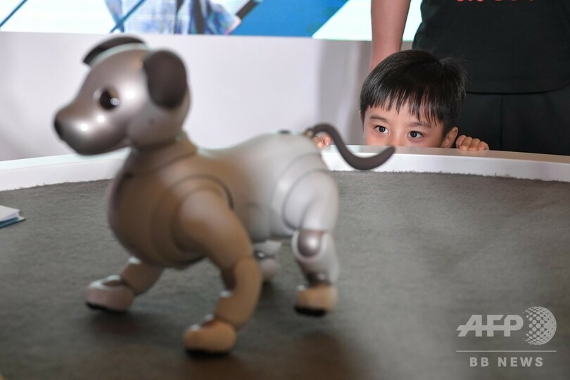 今回の展示会では、エレクトロニクスや映像、映画・テレビ、音楽、ゲーム、漫画・アニメ、教育などの分野を含む技術応用の発展の現状を展示。最先端AI技術を搭載した犬型ロボットの「アイボ(aibo)」や、全方位から臨場感のある音を体験できる音響技術「360度リアリティオーディオ(360 Reality Audio)」が中国で初めて展示された。(c)CNS/JCM/AFPBB News