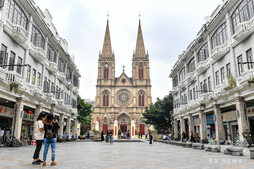 この大聖堂はカトリックの広州教区最大の教会で、世界に4か所あるすべて石造りのゴシック建築様式の教会の一つでもある。1996年に中国の重要文化財に指定されている。(c)CNS/JCM/AFPBB News