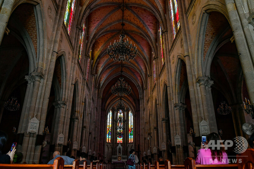 この大聖堂はカトリックの広州教区最大の教会で、世界に4か所あるすべて石造りのゴシック建築様式の教会の一つでもある。1996年に中国の重要文化財に指定されている。(c)CNS/JCM/AFPBB News