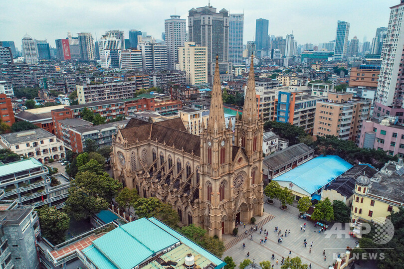 この大聖堂はカトリックの広州教区最大の教会で、世界に4か所あるすべて石造りのゴシック建築様式の教会の一つでもある。1996年に中国の重要文化財に指定されている。(c)CNS/JCM/AFPBB News