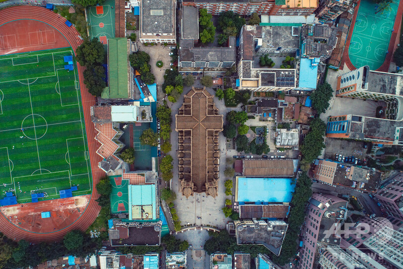 この大聖堂はカトリックの広州教区最大の教会で、世界に4か所あるすべて石造りのゴシック建築様式の教会の一つでもある。1996年に中国の重要文化財に指定されている。(c)CNS/JCM/AFPBB News