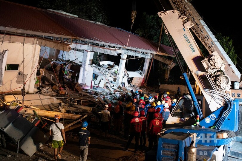 【4月23日 AFP】(写真追加)フィリピン北部で22日に発生した強い地震で、死者が11人に上ったことが分かった。23日現在も、ビルの倒壊で生き埋めになったとみられる数十人の救出活動が続いている。