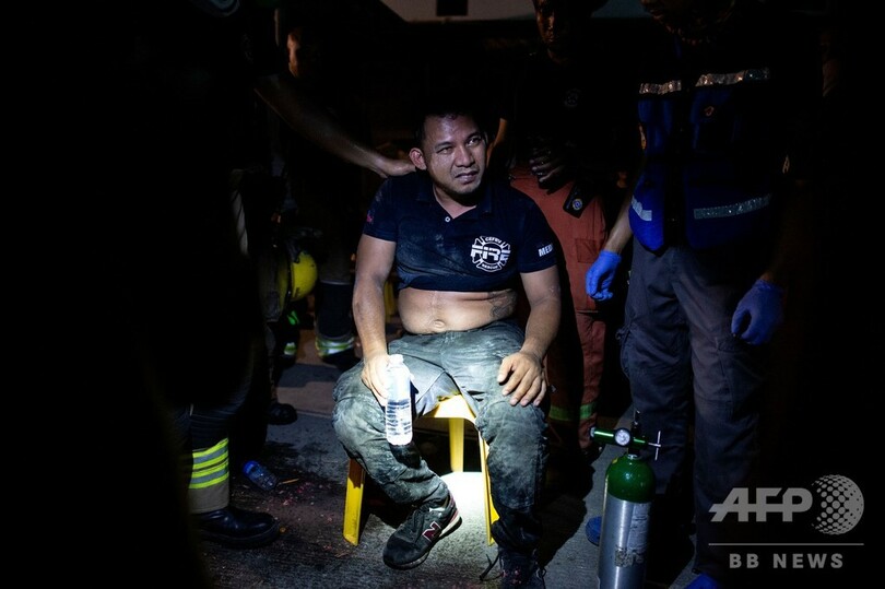 パンパンガ州の知事によると、捜索隊がビル倒壊現場でがれきの下敷きとなった少なくとも1人の生存者の声を確認したという。