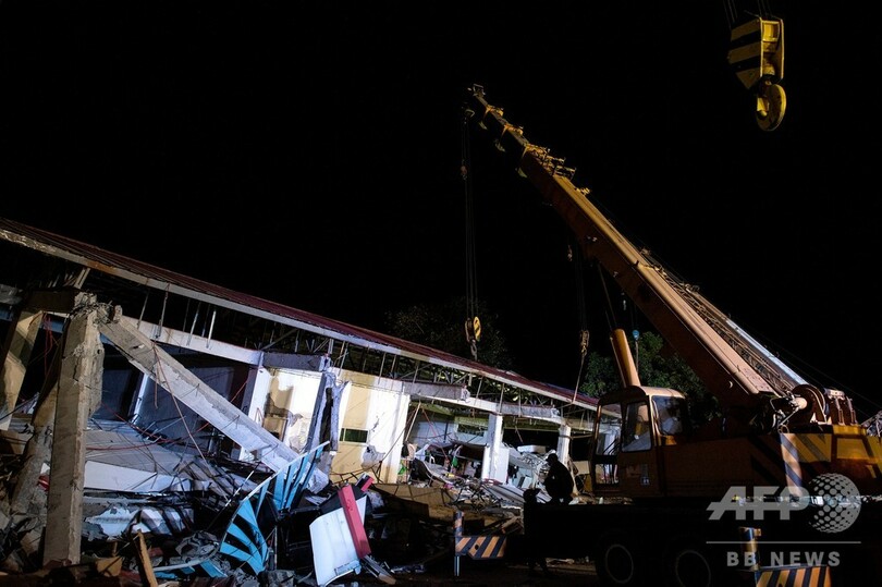 【4月23日 AFP】(写真追加)フィリピン北部で22日に発生した強い地震で、死者が11人に上ったことが分かった。23日現在も、ビルの倒壊で生き埋めになったとみられる数十人の救出活動が続いている。