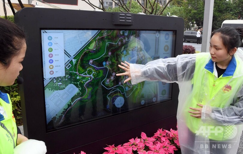 【5月2日 CNS】中国・福建省(Fujian)福州市(Fuzhou)に開園した、「福州飛鳳山スマート公園」。福建省で初めて5G通信が全域をカバーした公園であり、福州市で初めて自動運転車が運行するスマート公園でもある。(c)CNS/JCM/AFPBB News