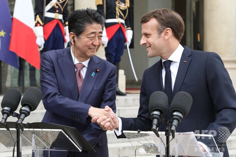 6月末に大阪で開かれる20か国・地域(G20)首脳会議の議長国として優先事項の協議を行うため欧米諸国を歴訪中の安倍首相は、最初の訪問国フランスでマクロン大統領と会談を行い、昼食を共にした。