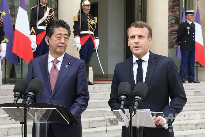 6月末に大阪で開かれる20か国・地域(G20)首脳会議の議長国として優先事項の協議を行うため欧米諸国を歴訪中の安倍首相は、最初の訪問国フランスでマクロン大統領と会談を行い、昼食を共にした。