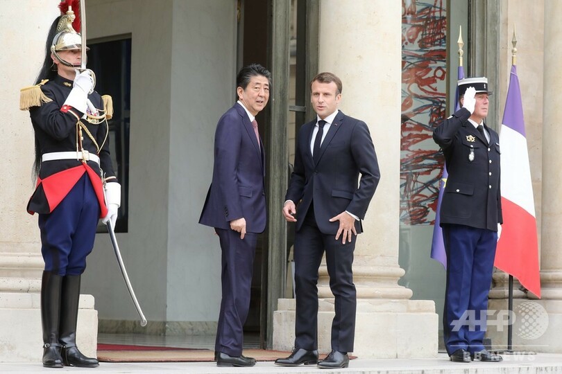 6月末に大阪で開かれる20か国・地域(G20)首脳会議の議長国として優先事項の協議を行うため欧米諸国を歴訪中の安倍首相は、最初の訪問国フランスでマクロン大統領と会談を行い、昼食を共にした。