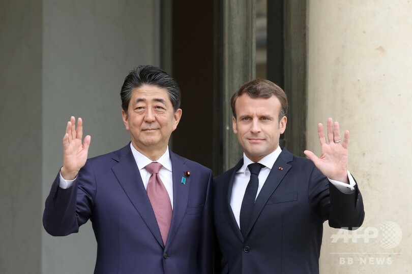 6月末に大阪で開かれる20か国・地域(G20)首脳会議の議長国として優先事項の協議を行うため欧米諸国を歴訪中の安倍首相は、最初の訪問国フランスでマクロン大統領と会談を行い、昼食を共にした。