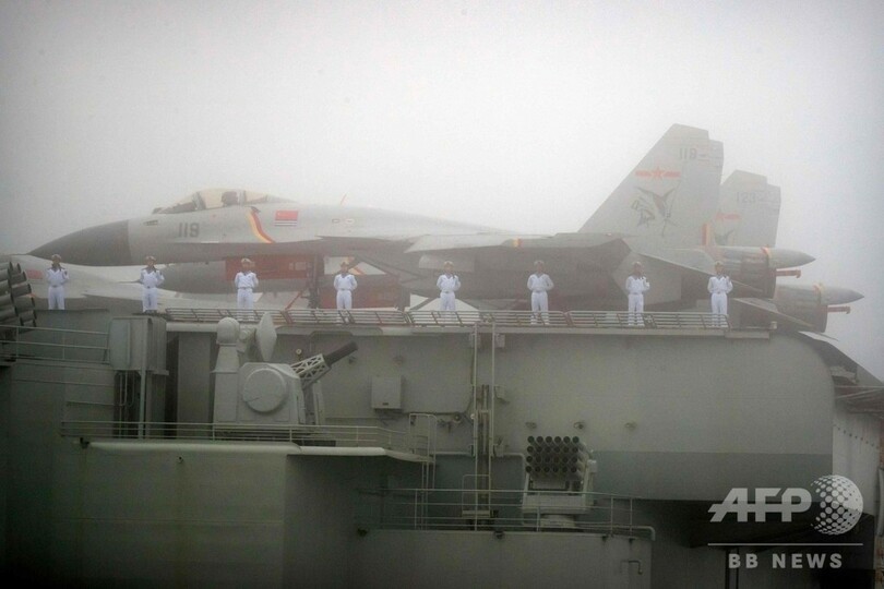ニュース 政治・経済 中国・青島で国際観艦式 初公開の新型駆逐艦も 2019年4月24日 15:09 発信地:北京/中国 [ 中国 中国・台湾 ] このニュースをシェア ‹ › ❮ 4/8 ❯ 中国・青島で開かれた国際観艦式で披露された中国海軍の空母「遼寧」の甲板に駐機する戦闘機(2019年4月23日撮影)。(c)Mark Schiefelbein / POOL / AFP 画像作成中 ! 【4月24日 AFP】中国海軍創設70周年を記念する国際観艦式が23日、青島(Qingdao)で行われ、同軍からは初公開された新型駆逐艦「南昌(Nanchang)」や空母「遼寧(Liaoning)」などを含め、艦艇32隻と航空機39機が参加した。(c)AFP 政治・経済 一覧へ> メディア・報道関係・法人の方向け 写真・動画 購入のお問合せ>