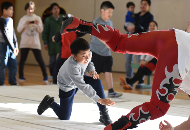 「八百長だ」などともやゆされるプロレス。だが、「相手の持ち味を存分に引き出して、最後に勝つ『受けの美学』が魅力だ」と言うファンもいる。板五小での体験教室を終えた子どもたちの中には、参加してくれた保護者に感謝しながら、「これからは下級生をやさしく引っ張り、頼られる6年生になりたい」と言う児童もいた。持ち味を引き出すという、プロレスの妙技ではないか。(c)AFPBB News/Yoko Akiyoshi