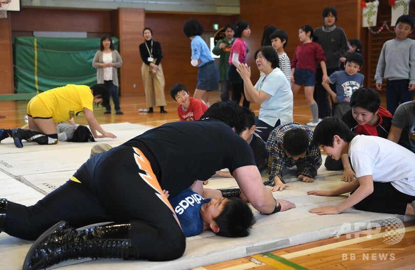 「八百長だ」などともやゆされるプロレス。だが、「相手の持ち味を存分に引き出して、最後に勝つ『受けの美学』が魅力だ」と言うファンもいる。板五小での体験教室を終えた子どもたちの中には、参加してくれた保護者に感謝しながら、「これからは下級生をやさしく引っ張り、頼られる6年生になりたい」と言う児童もいた。持ち味を引き出すという、プロレスの妙技ではないか。(c)AFPBB News/Yoko Akiyoshi