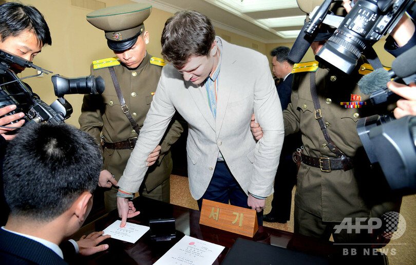 【4月26日 AFP】米紙ワシントン・ポスト(Washington Post)は25日、北朝鮮で投獄された末に昏睡(こんすい)状態で釈放され死亡した米大学生オットー・ワームビア(Otto Warmbier)氏について、北朝鮮が米国に医療費として200万ドル(約2億2000万円)を請求していたと報じた。