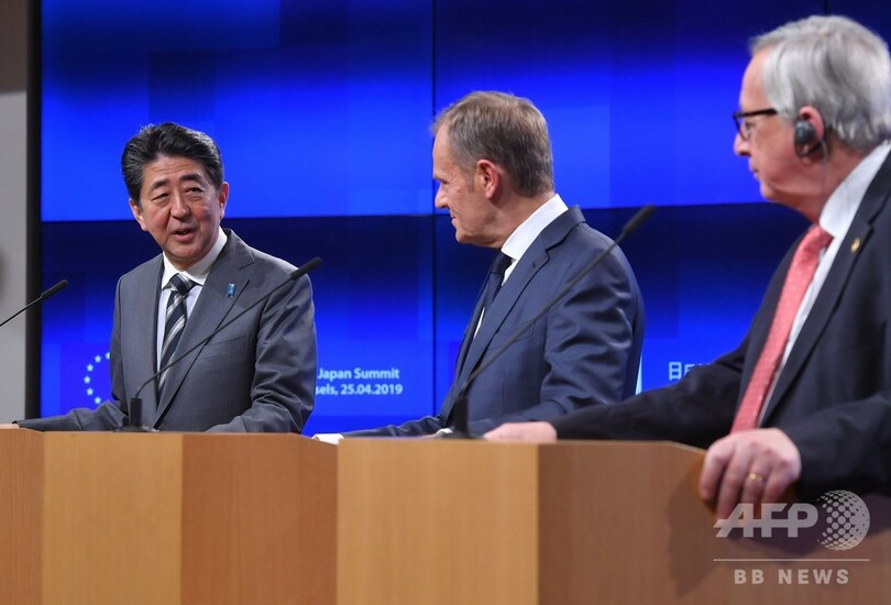 【4月26日 AFP】安倍晋三(Shinzo Abe)首相は25日、英国の欧州連合(EU)離脱(ブレグジット、Brexit)について、日本企業は英国を欧州市場への玄関口として利用してきており、事業継続のためには秩序が必要であるとして、「合意なき離脱」は何としてでも回避する必要があるとの見解を示した。