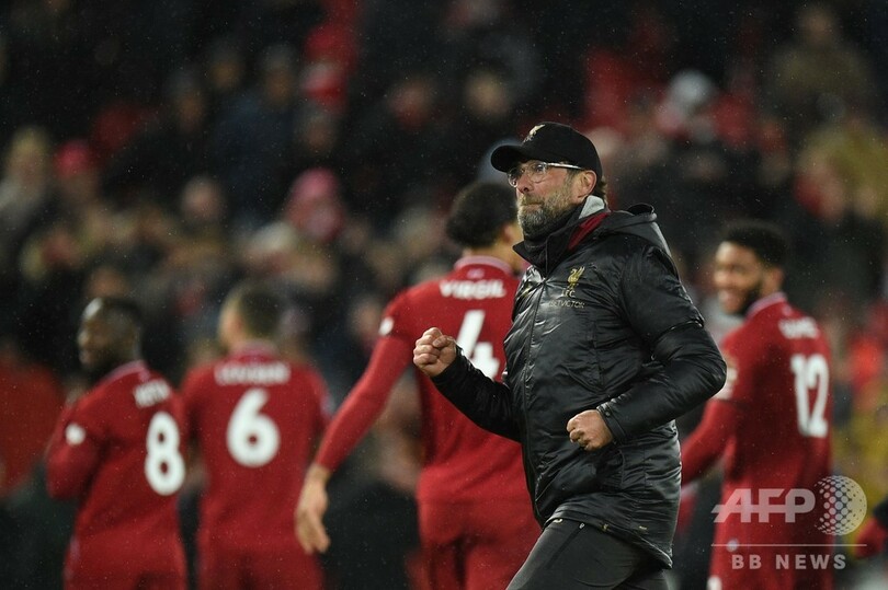 クロップ監督は「われわれは勝ち点を97にすることができる。それを目指そうではないか。そのあとは見守るしかない」「まだ歴史の真っただ中にいる。われわれは自分たち自身の歴史を作りたいと言ってきたし、選手は傑出している。それが現在この場所にいる理由だ。続けていこうではないか」。(c)AFP/Ian WHITTELL