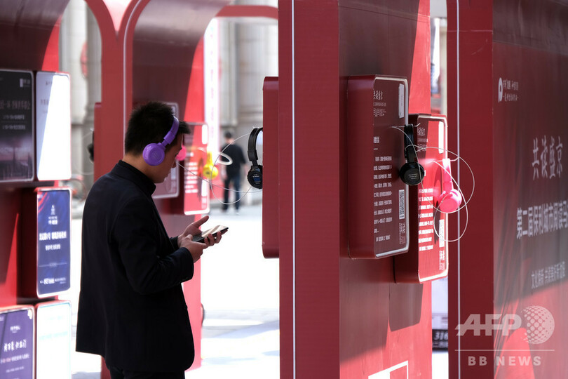 備え付けのヘッドホンか、またはスマートフォンからQRコードを読み取れば、日本の講談に似た形態の中国伝統の話芸「評書(Pingshu)」師の名人たちが語るこれらの故事を聴くことができる。(c)CNS/JCM/AFPBB News