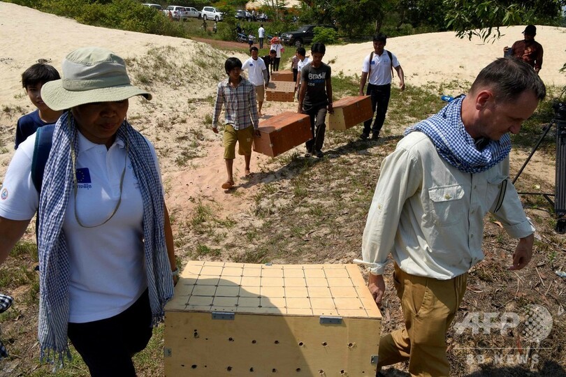 【4月27日 AFP】カンボジアで26日、希少な淡水ガメ、ロイヤル・タートル20匹が国内の川に放流された。ロイヤル・タートルは、密猟や違法な川砂の浚渫(しゅんせつ)などでかつては絶滅の危機に直面していた。