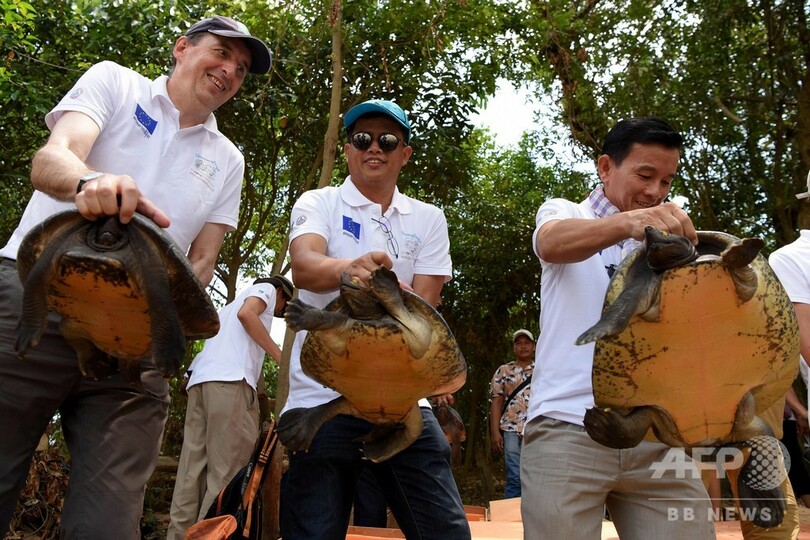 【4月27日 AFP】カンボジアで26日、希少な淡水ガメ、ロイヤル・タートル20匹が国内の川に放流された。ロイヤル・タートルは、密猟や違法な川砂の浚渫(しゅんせつ)などでかつては絶滅の危機に直面していた。