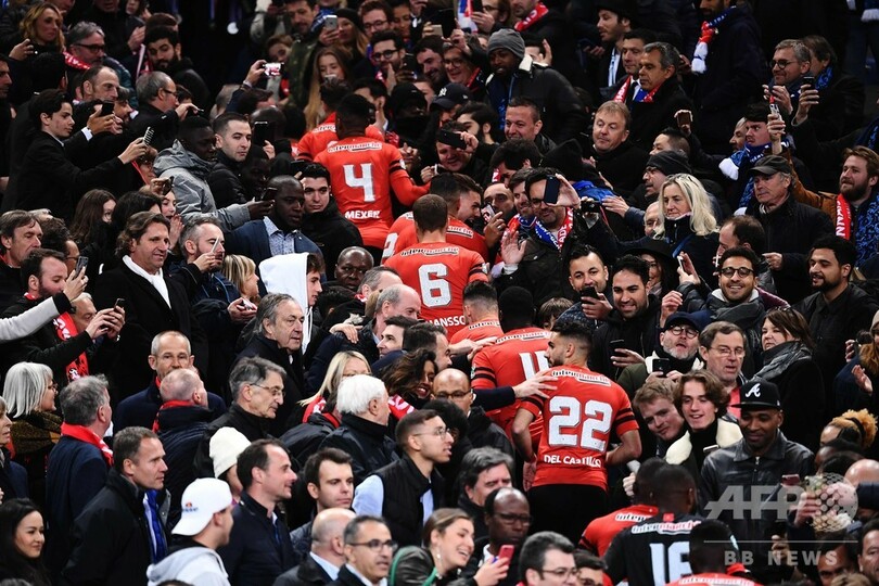 一方、見事な逆転優勝を飾ったレンヌはファンも含めて喜びを爆発させた。高級品の販売で財を成した国内有数の富豪、フランソワ・アンリ・ピノー(Francois-Henri Pinault)氏をオーナーに持ちながら、これまでタイトルにほとんど縁のなかったレンヌだが、これで1971年のフランス杯以来、約50年ぶりのタイトルを獲得し、来季のヨーロッパリーグ(UEFA Europa League 2019-20)の出場権も手に入れた。(c)AFP