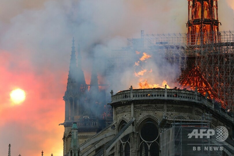 仏環境団体「ロバンデボワ(Robin des Bois)」は先週、火災によって屋根と尖塔に使われていた約300トンの鉛が溶け出したと指摘していた。当局によると、火災時、炎の温度は最も高くて800度に達したという。(c)AFP