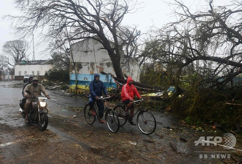【5月3日 AFP】(更新、写真追加)インド東部に3日、強力な大型サイクロン「ファニ(Fani)」が上陸し、同国PTI通信によると8人が死亡した。現地では暴風でココナツの木や飲食屋台が吹き飛ばされ、停電や断水も起きている。