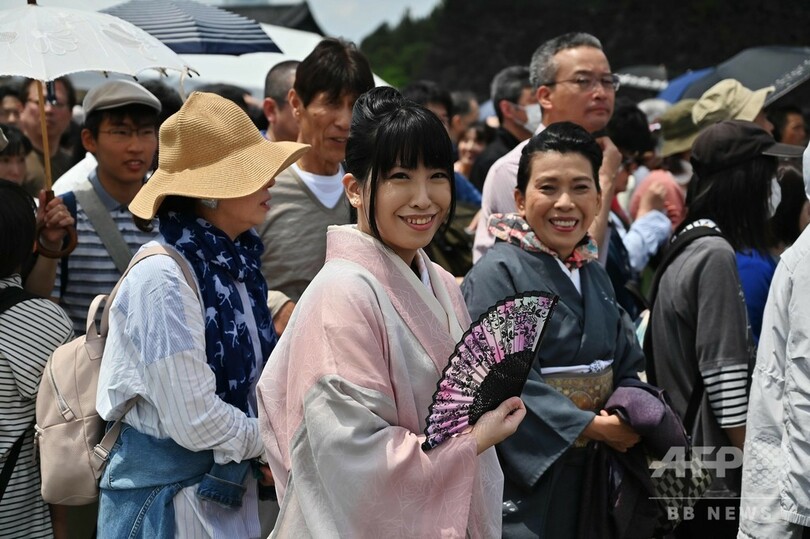 【5月4日 AFP】(更新、写真追加)天皇陛下の即位を祝う一般参賀が4日、皇居で行われた。天皇陛下が一般国民にお言葉を述べられるのは即位後初めてで、皇居正門前には開門前の時点で約5万人が集まった。