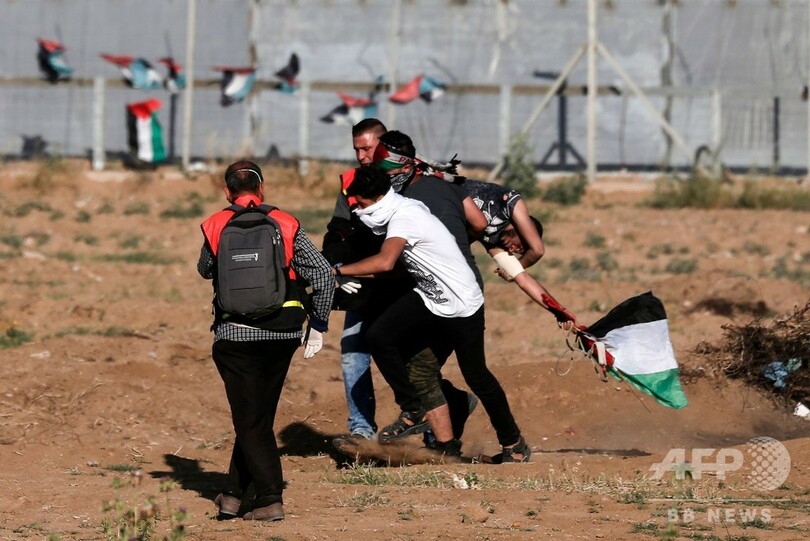 昨年3月のデモ開始以来、ガザ地区でイスラエル軍に殺害されたパレスチナ人は少なくとも246人に上り、大多数は境界沿いで死亡している。一方、同時期のイスラエル兵の死者は2人となっている。(c)AFP