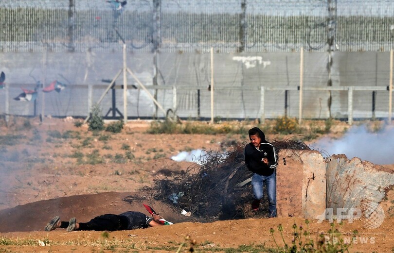 昨年3月のデモ開始以来、ガザ地区でイスラエル軍に殺害されたパレスチナ人は少なくとも246人に上り、大多数は境界沿いで死亡している。一方、同時期のイスラエル兵の死者は2人となっている。(c)AFP