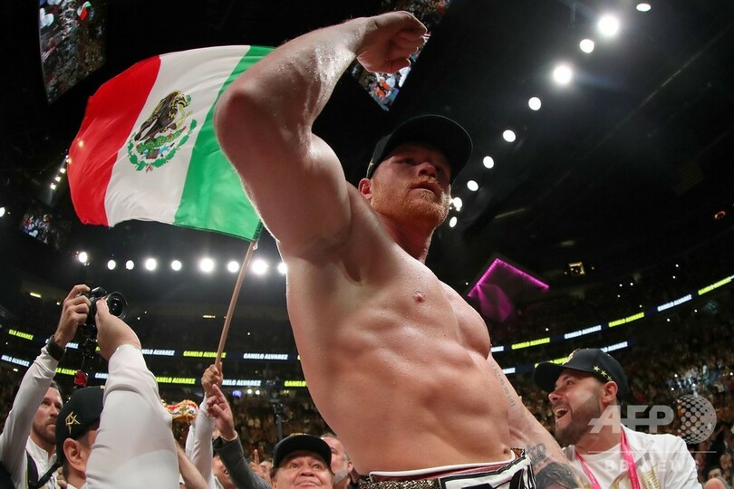 【5月5日 AFP】ボクシングWBC、WBAスーパー、IBF世界ミドル級3団体統一戦が4日、米ネバダ州ラスベガスのTモバイル・アリーナ(T-Mobile Arena)で行われ、「カネロ」ことサウル・アルバレス(Saul Alvarez、メキシコ)が判定の末3-0(115-113、115-113、116-112)でダニエル・ジェイコブス(Daniel Jacobs、米国)を下し、統一王座を獲得した。