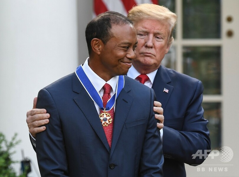 ドナルド・トランプ(Donald Trump)米大統領は、ゴルフ界の偉大なレジェンドに同国文民に贈られる最高勲章を授ける際に、「勝利、勝利、勝利への飽くなき意志だ」とウッズをたたえると、「こういった資質は境界線を押し上げ、限界に逆らい、そして常に偉大さを追い求め続けるという米国の精神を体現している」と述べた。