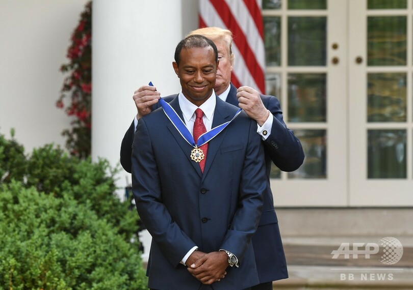 ドナルド・トランプ(Donald Trump)米大統領は、ゴルフ界の偉大なレジェンドに同国文民に贈られる最高勲章を授ける際に、「勝利、勝利、勝利への飽くなき意志だ」とウッズをたたえると、「こういった資質は境界線を押し上げ、限界に逆らい、そして常に偉大さを追い求め続けるという米国の精神を体現している」と述べた。