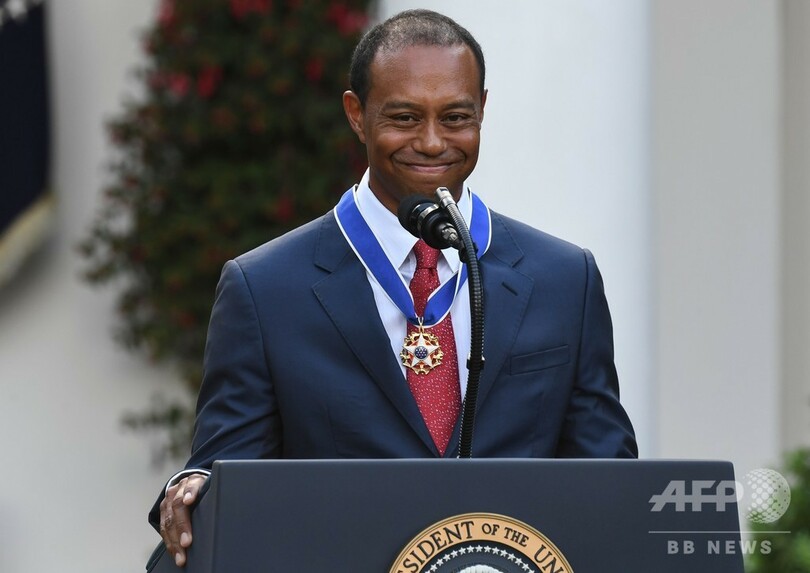 ウッズに自由勲章、トランプ大統領が米ホワイトハウスで授与